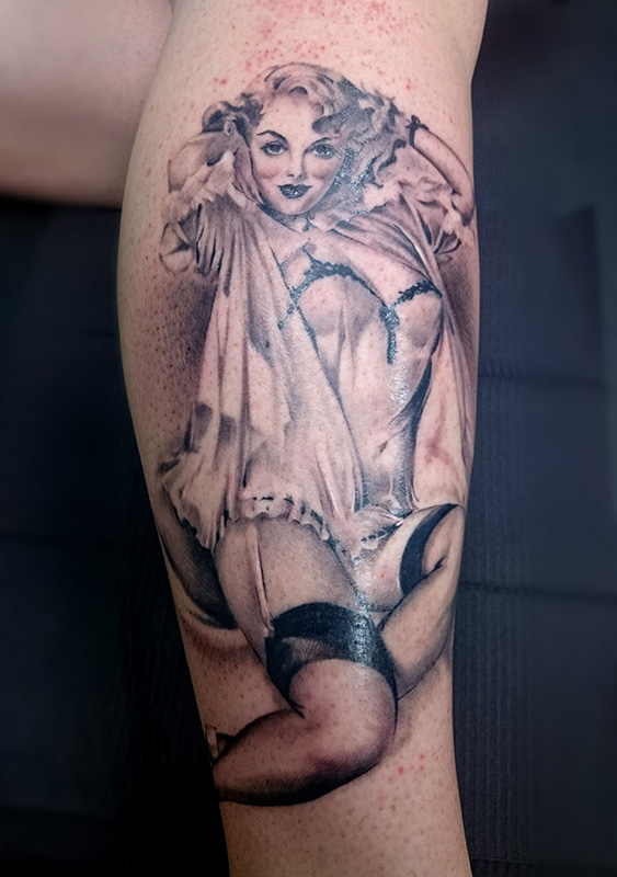 Me decanto por el realismo, me gusta mucho trabajar al detalle y tratar de reproducir imágenes que cobren vida en la piel. Aunque por otra parte no me puedo estar quieta y me gusta ir tanteando otro tipo de trabajos lineales y con colores más sólidos. Me ayudan a despejar la mente y me estimulan para no estancarme solo en un estilo. Me considero una artista versátil y me gusta estar preparada para cualquier reto que me puedan proponer y sacarlo adelante.
