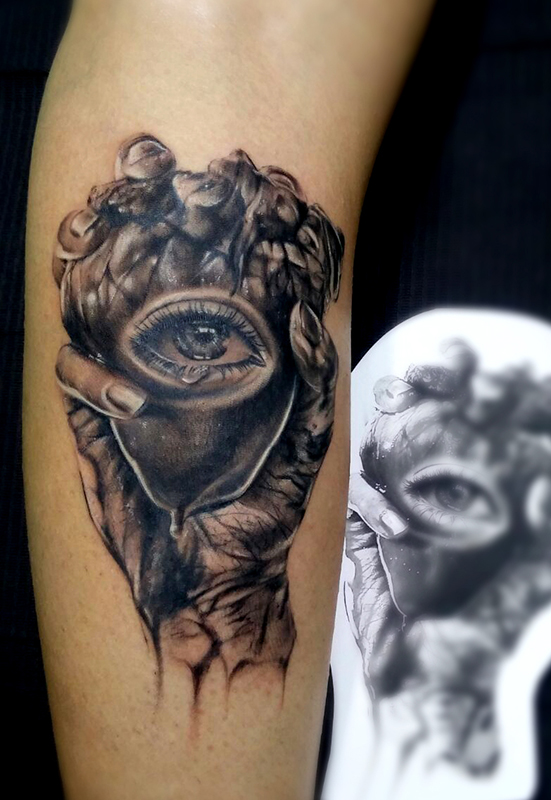 Hola a todos! Como bien dices soy de Barcelona, donde crecí dibujando, bailando, pintando graffiti…y coqueteando con el tattoo haciéndome mis primeros tatuajes y empezando a interesarme por este arte. En 2010 llegué por primera vez a Granada buscando inspiración y un cambio de aires, fué entonces cuando vi claro que quería formar parte de este mundo, que yo también tenía algo bueno que mostrar. He aprendido de forma autodidacta, han sido unos años revueltos, de mucha dedicación para seguir creciendo y mejorando por depurar la técnica y desarrollar un propio estilo.