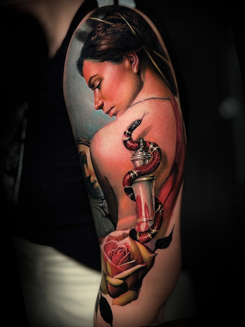 El color te permite añadir una capa más de valor a la pieza: trasmitir con el color si sabes hacerlo es más completo, más adulto. Si de verdad quieres arte en la piel, hagamos arte!