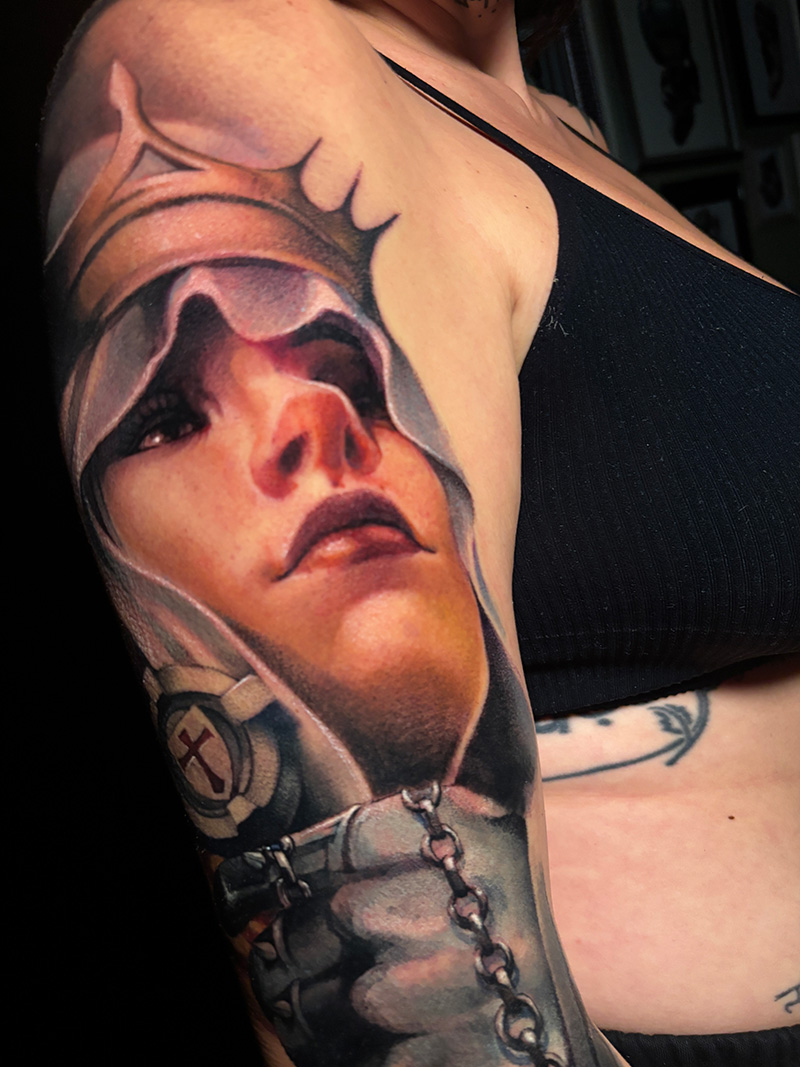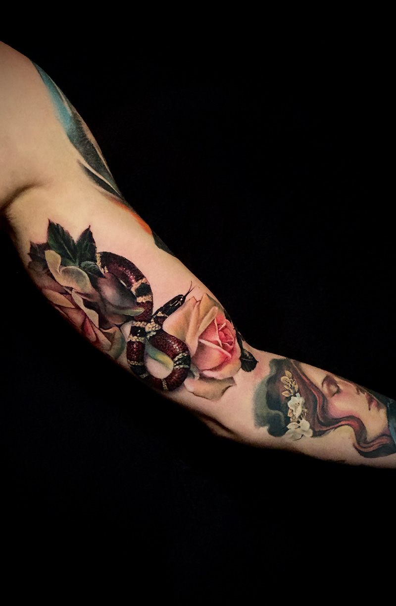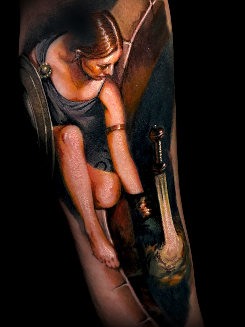He vuelto a pintar después de 20 años sin coger un pincel gracias a una visita que hice a Dallas, al estudio Eden Body Art, cuya propietaria es Deanna James, a la que admiro mucho, y me está ayudando mucho a íntegrar procesos pictóricos en el tattoo. Está siendo una periodo muy excitante en mi carrera.