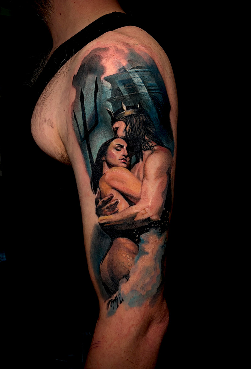 Prácticamente desde que tengo recuerdo trabajo con Arte Sano Tattoo Supplies, que, además de estar en Bilbao, han ido creciendo conmigo y siempre me he sentido muy arropado por ellos. De hecho, tengo el placer de formar parte de su Pro Team. Ramón es como parte de la familia porque siempre nos mima y nos atiende genial. Un gran representante del proyecto de Ivanuko, Laura y toda la Familyink de Arte Sano.