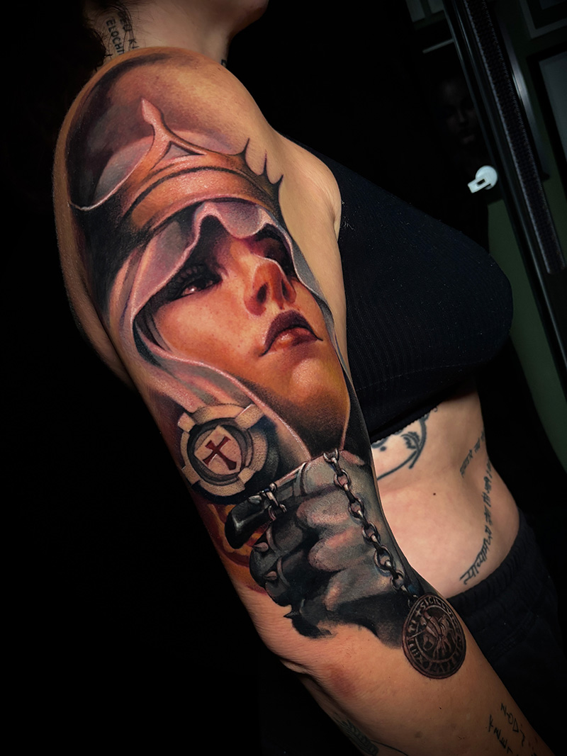 Quiero pensar que sí. Trasladar una foto a la piel me parece técnicamente muy laborioso y complicado, pero no es lo que busco. Todos mis diseños son hechos por mi y la mayoría pintados digitalmente antes de tatuarlos.