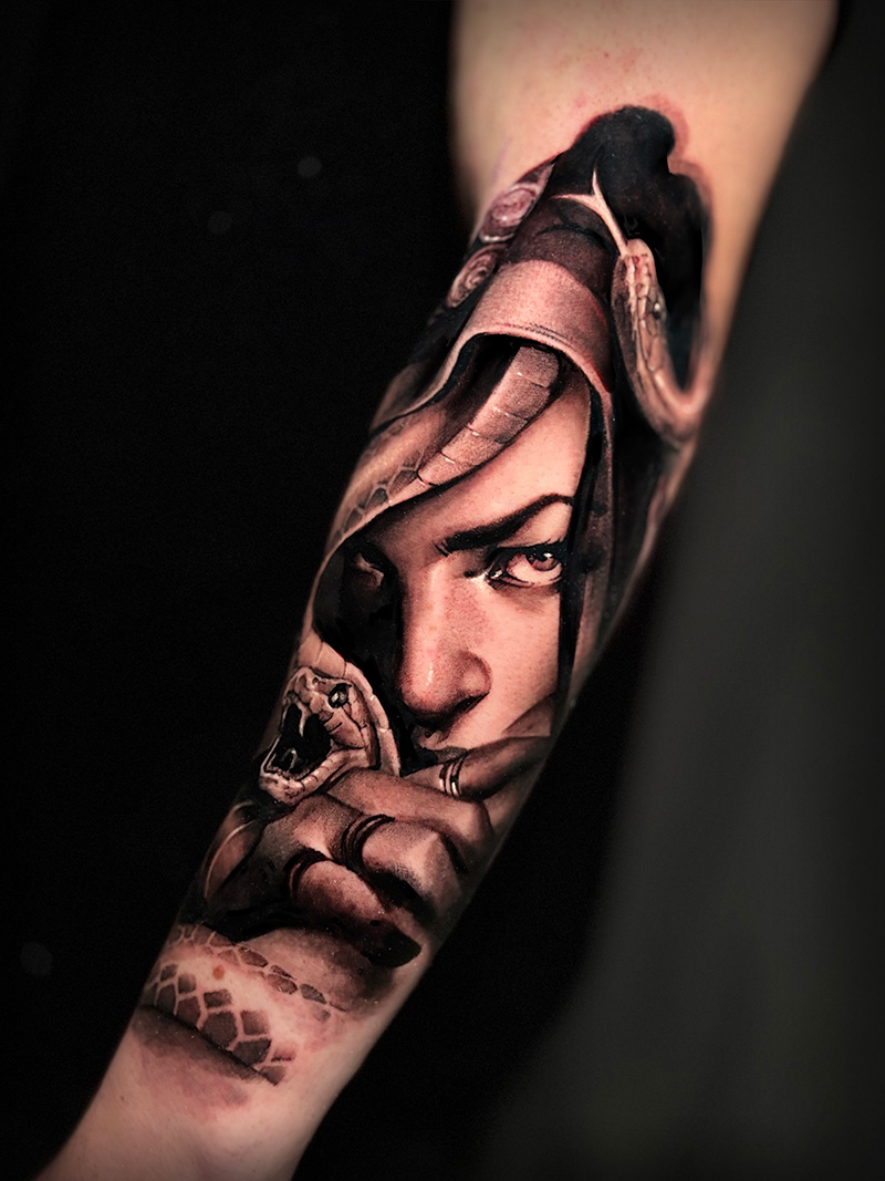 Prefiero conocer las razones del cliente para tatuarse y que le gustaría trasmitir y a partir de ahí componer un diseño adecuado con mi visión de todo ello.